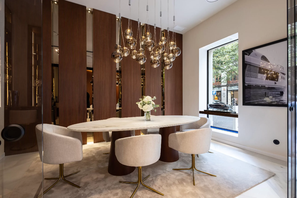 A boutique foi concebida como um ponto de encontro para clientes internacionais, especialmente investidores latino-americanos, e oferece uma experiência única: desde a exploração virtual dos iates com realidade aumentada até à personalização de cada detalhe de interiores e layout das embarcações.