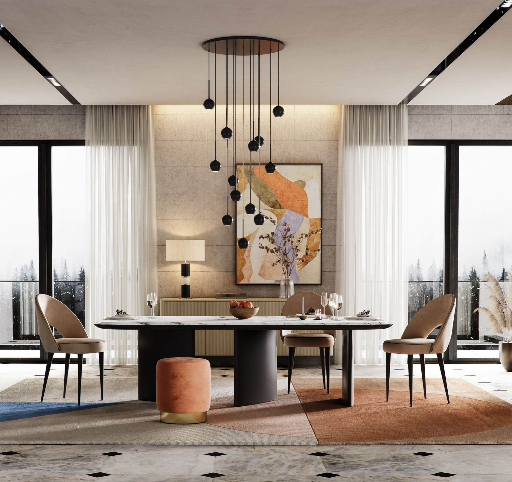 Ideal para espaços urbanos, a coleção Contemporary transforma ambientes tradicionais em cenários vibrantes e futuristas, sem comprometer o conforto e o acolhimento característicos do traço Alfaiate D’Interiores.
