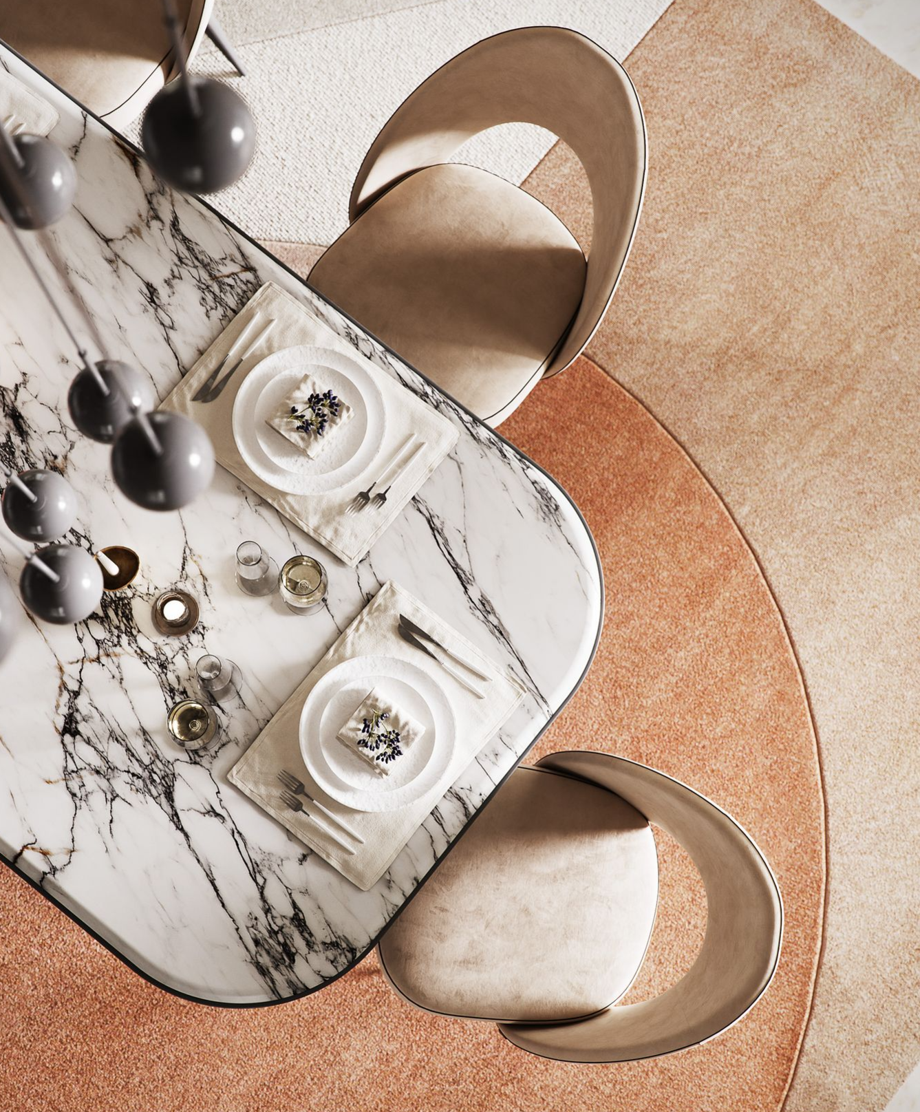 As peças apresentam formas geométricas ousadas e superfícies refinadas, criando um equilíbrio perfeito entre sofisticação e praticidade.