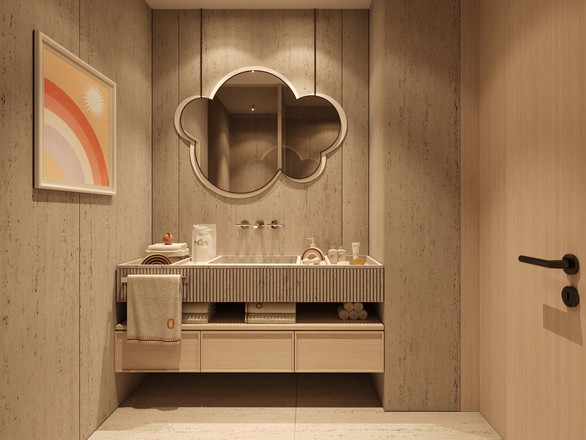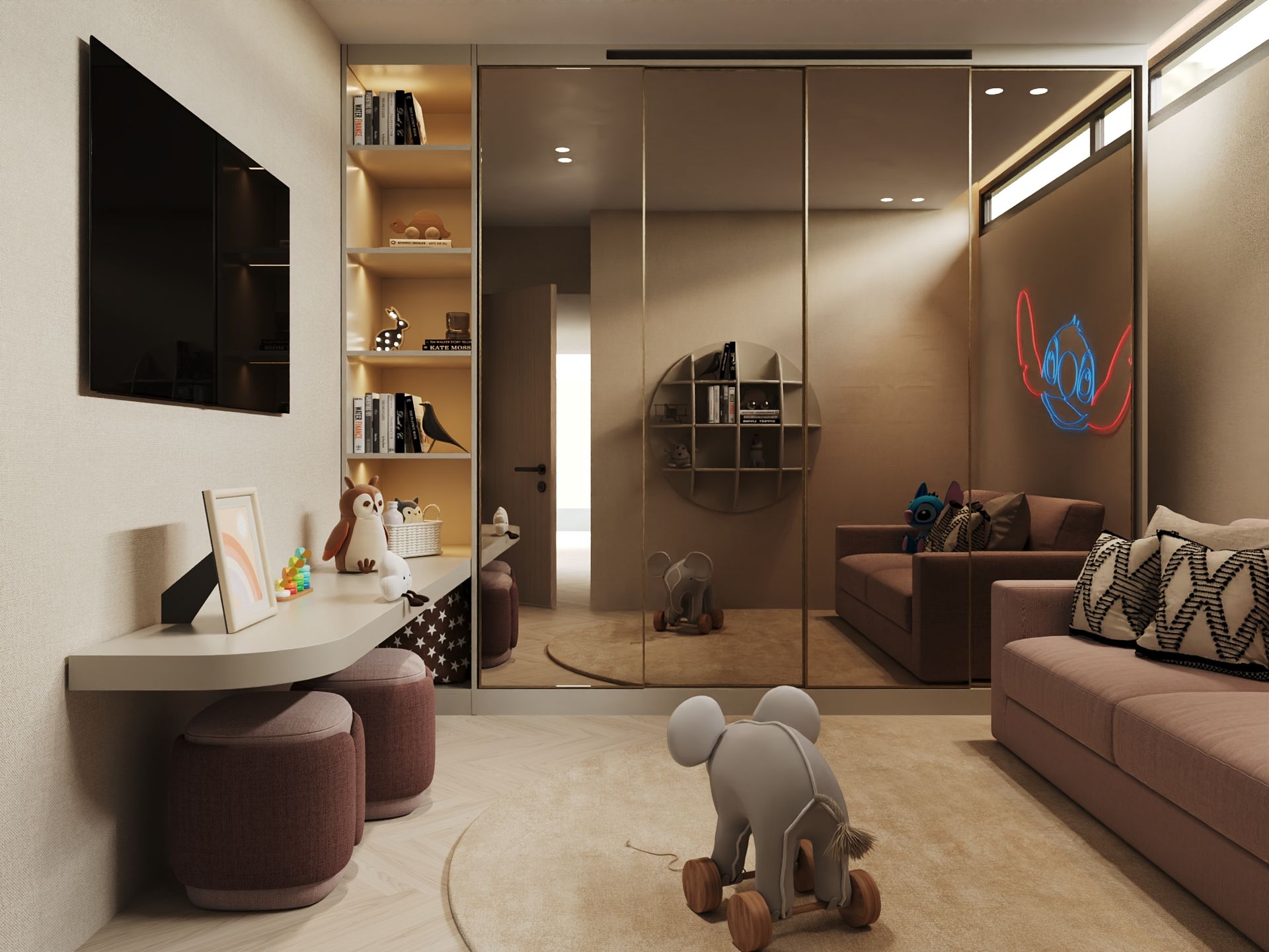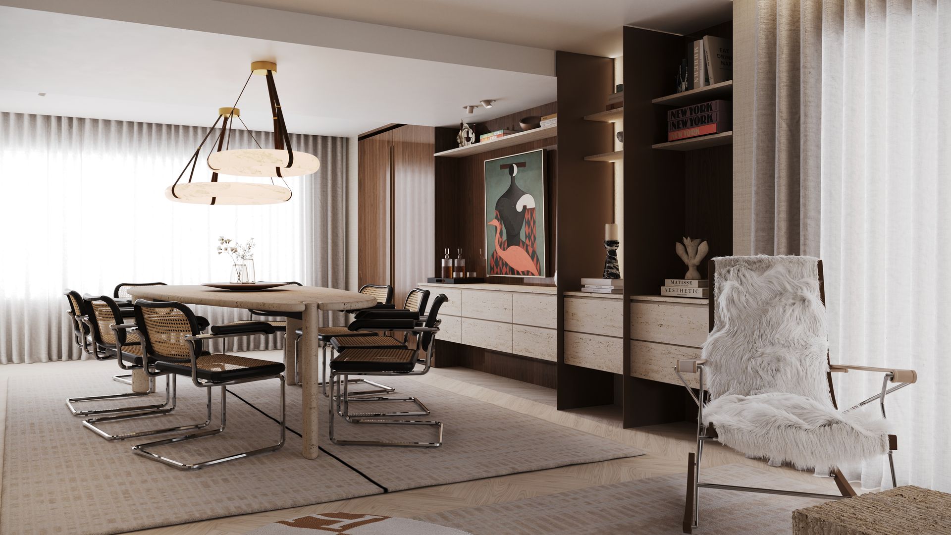 O processo criativo iniciou-se com o desenvolvimento de um moodboard e linhas orientadoras que deram origem a uma linguagem visual única, marcada pela fusão equilibrada de diferentes estilos desde o Contemporâneo ao Retro Chic, com apontamentos de inspiração industrial. Esta abordagem resultou numa identidade coesa e dinâmica, onde os contrastes são explorados com elegância e intencionalidade. Este projeto envolveu um trabalho completo de consultoria, incluindo desenvolvimento de projeto 3D, orçamentação e produção, assegurando uma execução rigorosa e alinhada com o conceito definido.
