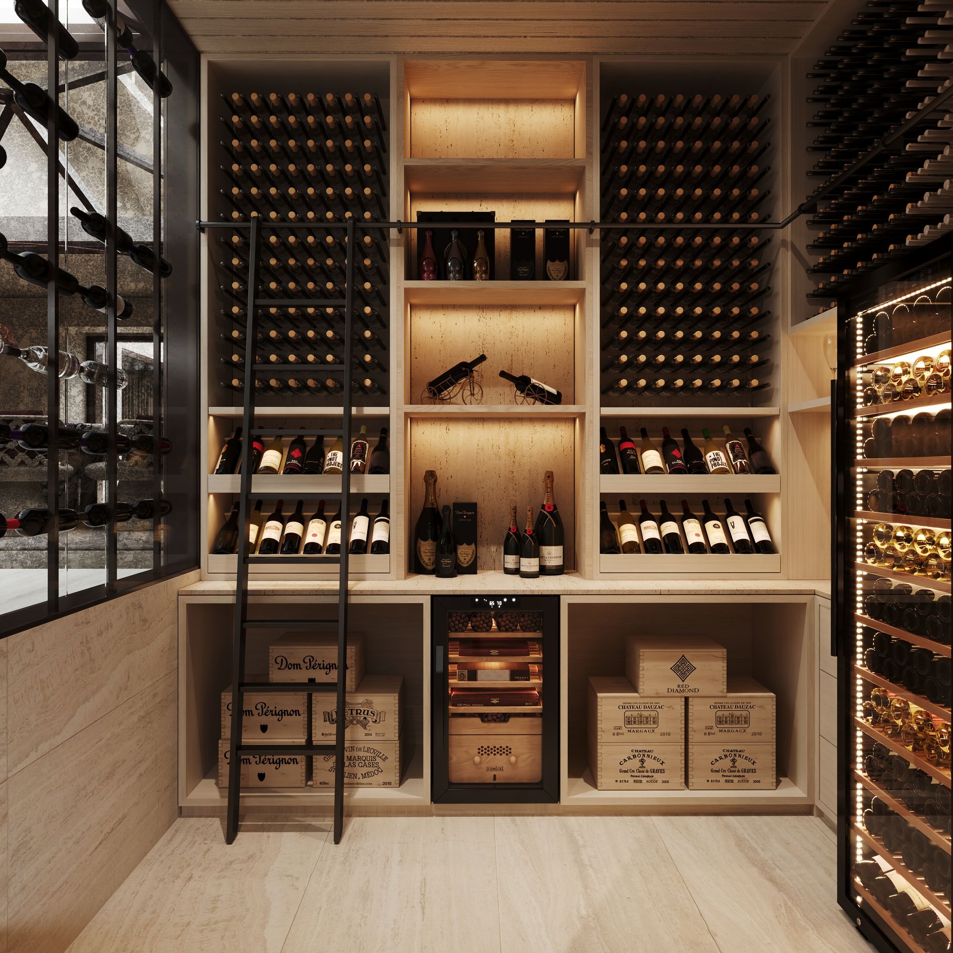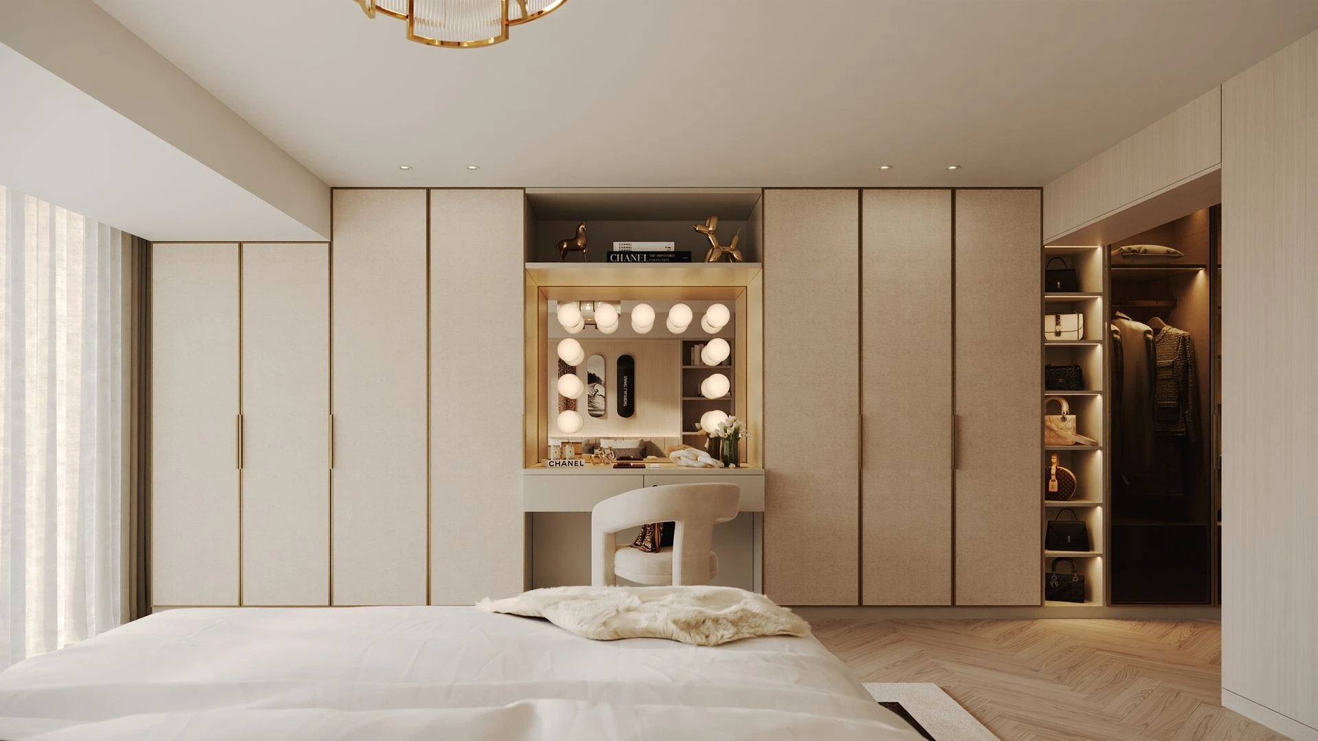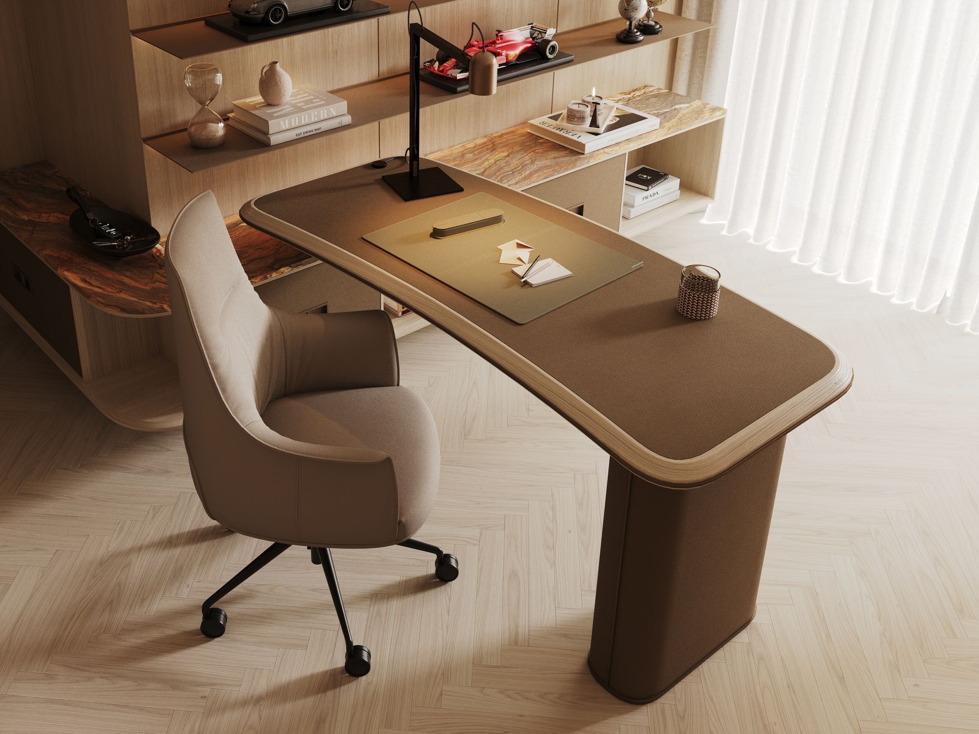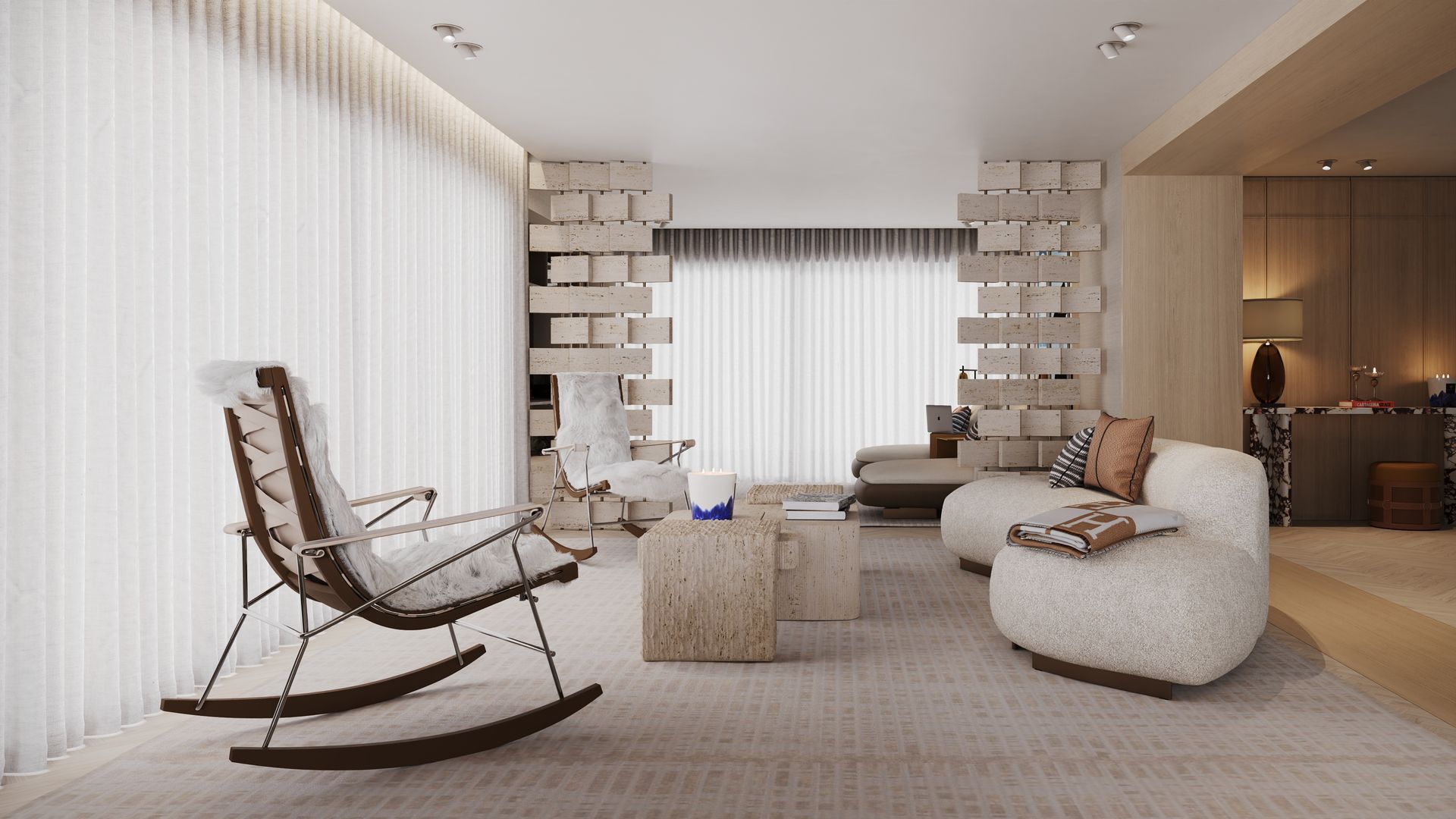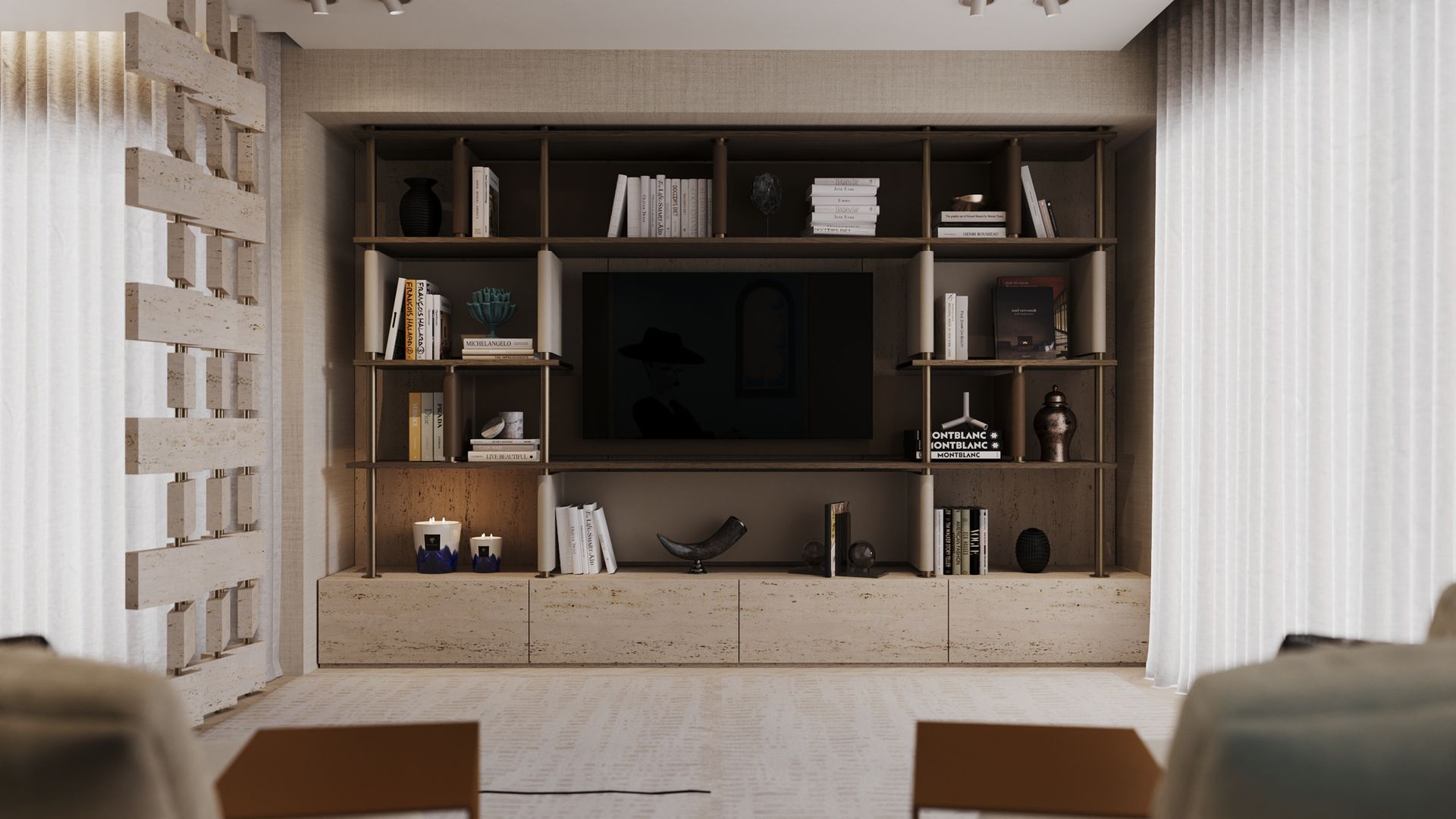 Neste contexto de exigência e personalização, o trabalho desenvolvido pelo Alfaiate D’Interiores assume um papel central. Responsável pela conceção e execução de todo o mobiliário à medida, o projeto foi acompanhado de forma próxima e contínua com os proprietários, desde a fase inicial de briefing até à materialização final. Este acompanhamento diário permitiu garantir que cada decisão refletisse fielmente o estilo de vida e as preferências estéticas do cliente.