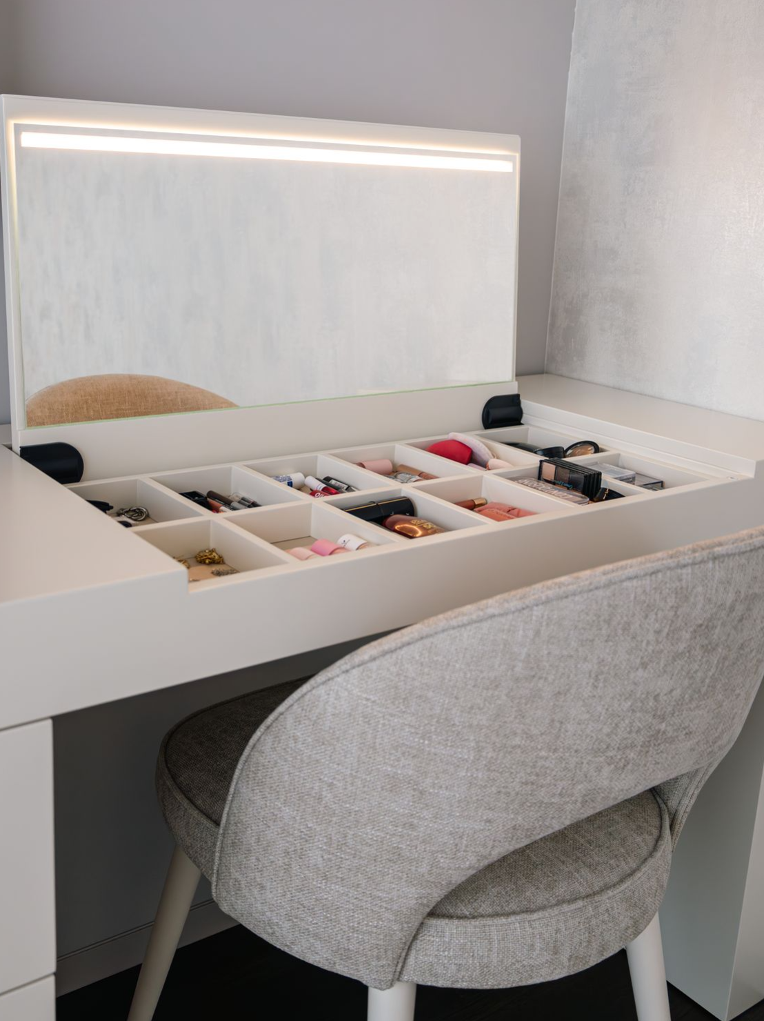 Do conceito ao detalhe, o Alfaiate D’Interiores desenhou uma casa verdadeiramente personalizada, única como quem nela habita. Este projeto no Porto reflete uma abordagem feita à medida, onde cada espaço foi pensado para traduzir a essência e o modo de viver da família. Todo o mobiliário — da sala de estar e jantar aos quartos, suites e hall de entrada — foi concebido com um olhar atento à harmonia, à funcionalidade e ao conforto, criando uma continuidade estética entre as diferentes áreas da casa.
