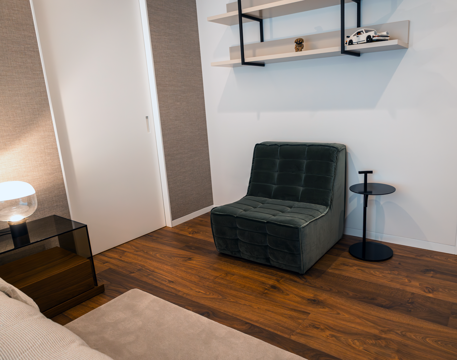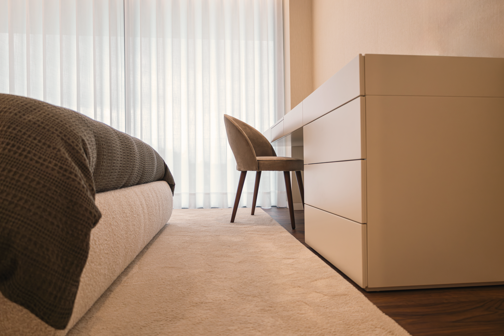 Este projeto reflete a abordagem do Alfaiate D’Interiores ao design de interiores residencial, onde cada detalhe — do mobiliário à iluminação decorativa — é desenhado de forma personalizada, respondendo às necessidades do cliente e à arquitetura do espaço.
